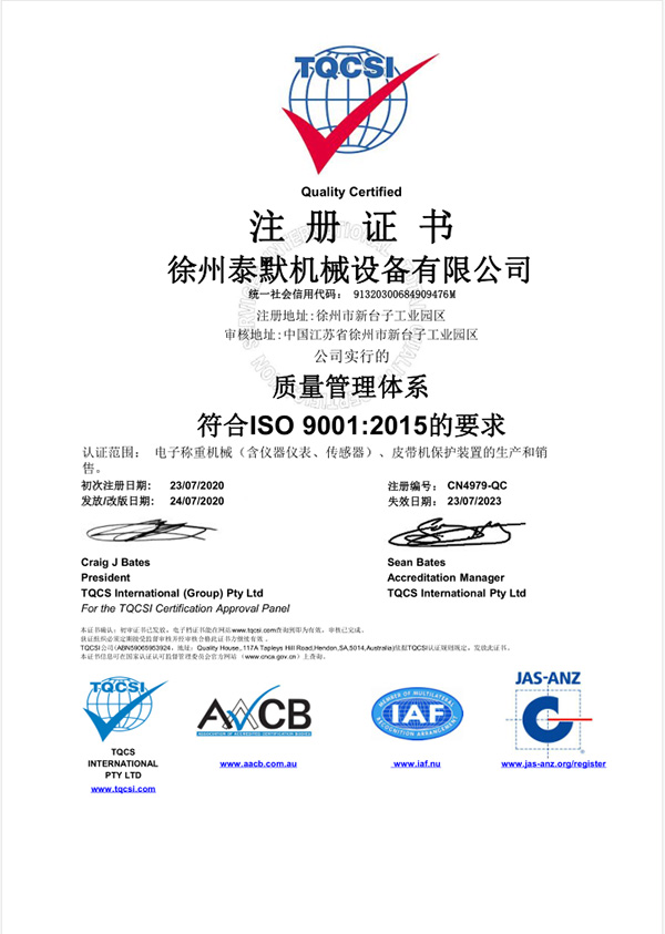 徐州泰默機械設備有限公司(原徐州拉姆齊)是皮帶稱、采樣系統、檢驗稱、金屬探測儀、測量控制系統的制造商。